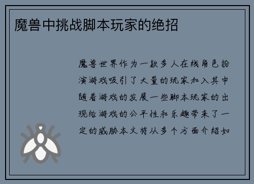 魔兽世界正式服技能栏如何放大视角 在魔兽世界正式服中,放大技能栏视角是一种常见的需求。通过放大技能栏视角,玩家可以更清晰地看到自己的技能图标,从而更方便地使用技能。本文将从多个方面详细介绍如何放大技能栏视角。 1. 使用界面设置 在魔兽世界正式服中,玩家可以通过界面设置来放大技能栏视角。打开游戏设置界面,点击“界面”选项卡,然后找到“技能栏”选项。在技能栏选项中,可以找到一个“缩放”滑块,通过调整...
