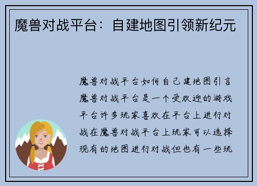 魔兽游戏地图下载指南 引言 魔兽游戏是一款备受玩家喜爱的在线多人游戏,其中地图扮演着至关重要的角色。本文将为大家详细介绍如何在魔兽游戏中下载地图,帮助玩家更好地享受游戏乐趣。 选择合适的地图来源 1. 官方地图库 官方地图库是魔兽游戏内置的地图资源库,提供了大量官方制作的地图供玩家下载。玩家可以在游戏内的地图选择界面中浏览并下载官方地图。 2. 第三方地图网站 除了官方地图库,玩家还可以在第三方地...