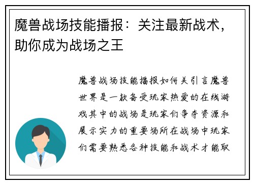 魔兽世界如何做动力的装备任务 魔兽世界是一款备受玩家喜爱的大型多人在线角色扮演游戏,其中最重要的一项内容就是装备任务。装备任务不仅能够提升角色的实力,还能增加游戏的乐趣和挑战性。本文将从多个方面详细阐述魔兽世界如何设计动力的装备任务。 1. 任务难度的设置 魔兽世界中的装备任务通常会根据玩家的等级和实力来设置不同的难度。这样一来,新手玩家可以选择相对简单的任务来提升自己的装备,而高级玩家则可以挑战...